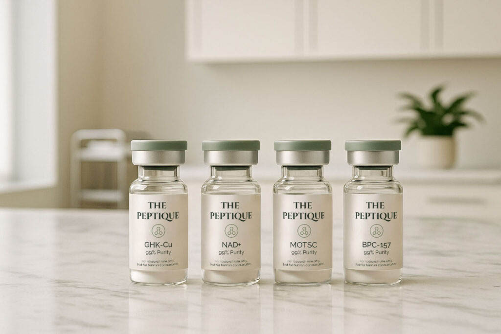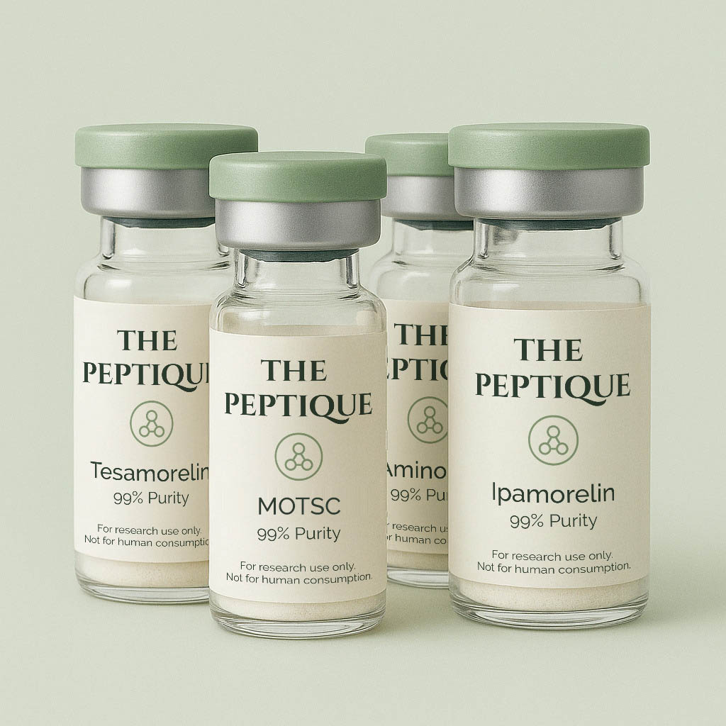 At The Peptique, we’ve curated a refined selection of research peptides that include specialty blends, and intentional groupings, to simplify your decision making process. These collections are organized by function, outcome, and therapeutic focus, making it easier to identify the ideal compounds for your research with clarity and confidence.